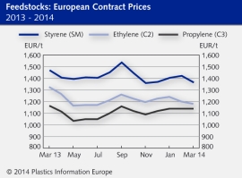 Standard Thermoplastics Trend March 2014: Falling costs pressure prices in the ethylene chain / PP firm / Styrenics pay tribute to monomer decline / Market likely to continue stable