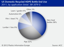 US plastic bottle recycling rates jump 6.2% year-on-year in 2012 / PET and HDPE account for 96% / Total bottle recycling rate stands at 30%
