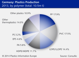 2013 production levels slightly up year-on-year / Processing also shows positive trend / Still shy of 2011 levels / E&E usage down / Rise in medical applications / New records for plastics recycling / Latest Consultic study
