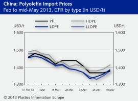 China Standard Thermoplastics April/May 2013: Mixed bag of perspectives / Ethylene pricing continues depressed / Largely stable pricing / Some slight upward movements / Downstream processing capacity utilisation 70%
