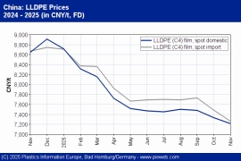 China standard thermoplastics November: Almost all prices fall despite rise in feedstock costs / High supply, weak demand exert pressure / Some impulses expected from incentive policies